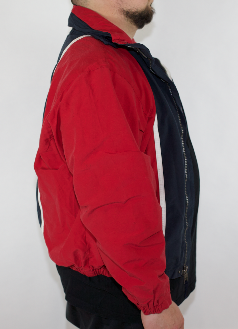 This Sustainably Sourced Vintage Red White & Navy Nautica Spray Jacket is perfect for any occasion