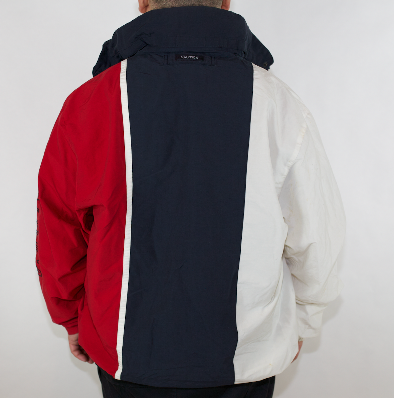 This Sustainably Sourced Vintage Red White & Navy Nautica Spray Jacket is perfect for any occasion